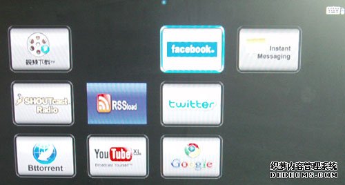 国际视讯、youtube网站、股票信息、BT下载、谷歌在线交流、网络邮箱、LOST信息、图片搜索、网络电台、RSS国内视频点播、电视直播、国际天气预报、支持键盘鼠标的谷歌搜索引擎、百度搜索等。如此强大的网络功能,即使即将上市的1185方案网络功能也不可及。