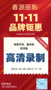 双十一疯狂购物节再次来临!为回馈新老嘉宾,深圳春源丽影电子科技有限公司,将广大个人高清粉丝以及医疗机构最为常用的8款高清录像机产品,推出了超低价特惠方案!产品涵盖了单接口机、多接口机、带屏机、微型机等型号。推出型号多、针对性强、价格超低、时...
