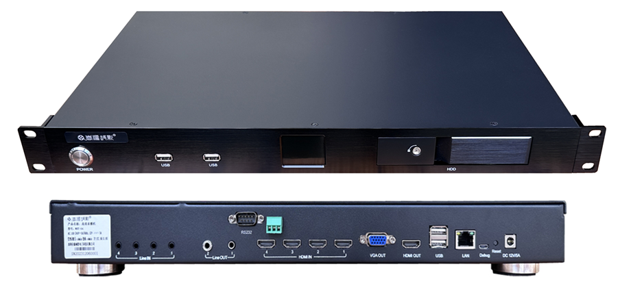 • 专业化音频矩阵:同步处理4路HDMI内嵌音频、6路网络音频流及6路文件内嵌音频。额外提供4路3.5mm独立音频输入接口,支持为任意视频通道进行实时配音、解说或混音,满足复杂声场制作需求。