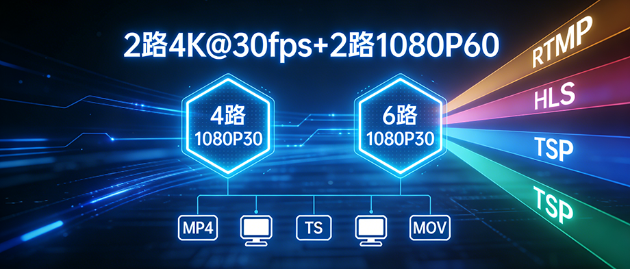 • 同时录制支持2路4K@30fps+2路1080P60超高清录制。6路同时可录1080P30。