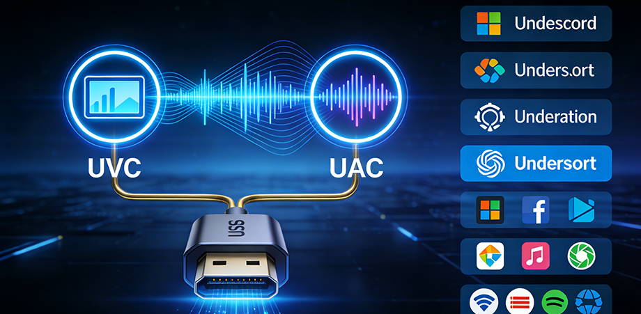 • 支持标准UVC(视频)与UAC(音频)协议,通过专用USB接口输出导播画面与音频。