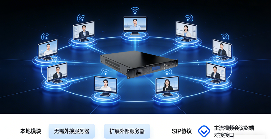 • 支持标准SIP协议,可与主流视频会议终端无缝对接。