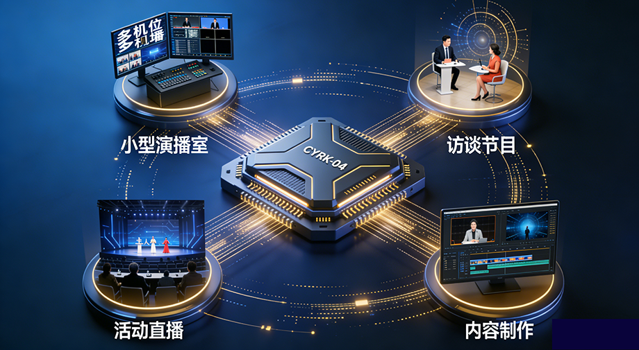 CYRK-04录播主机是一款集高性能、高集成度、高灵活性于一体的专业音视频处理设备。其核心优势在于: